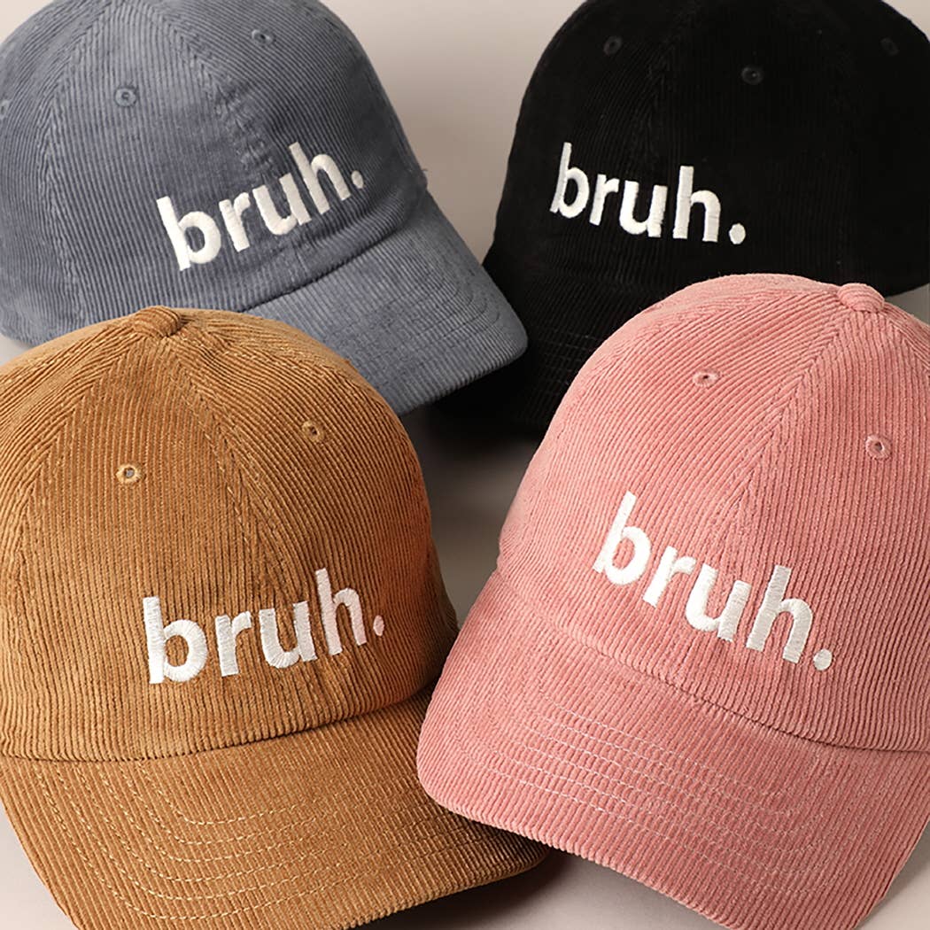 Bruh Lettering Embroidered Corduroy Cap