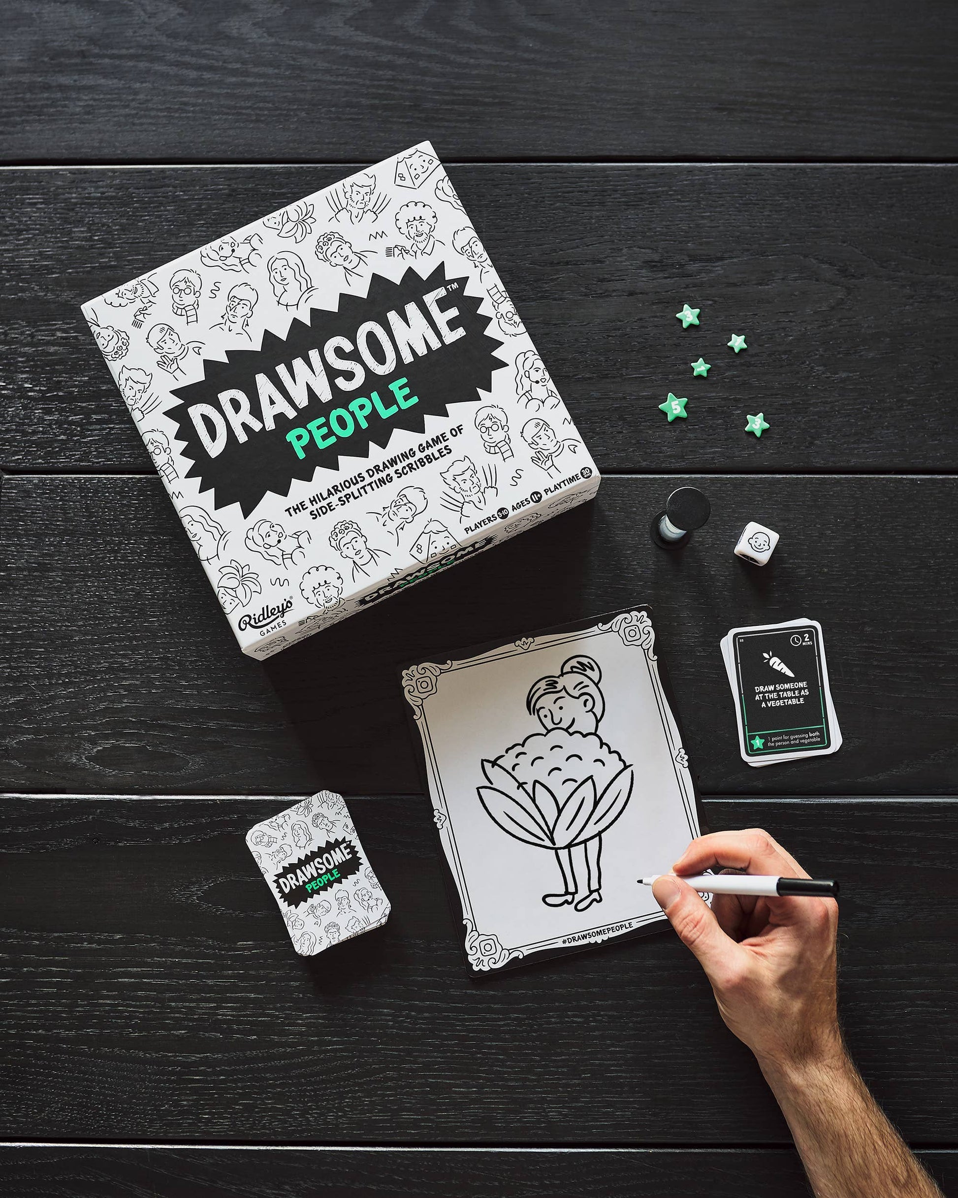 Ever wondered what you'd look like as a vegetable, or with a huge beard? Find out in Drawsome People, a hilarious drawing game of side-splitting scribbles from Ridley's Games!