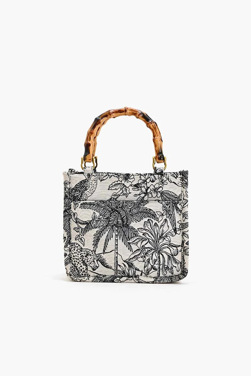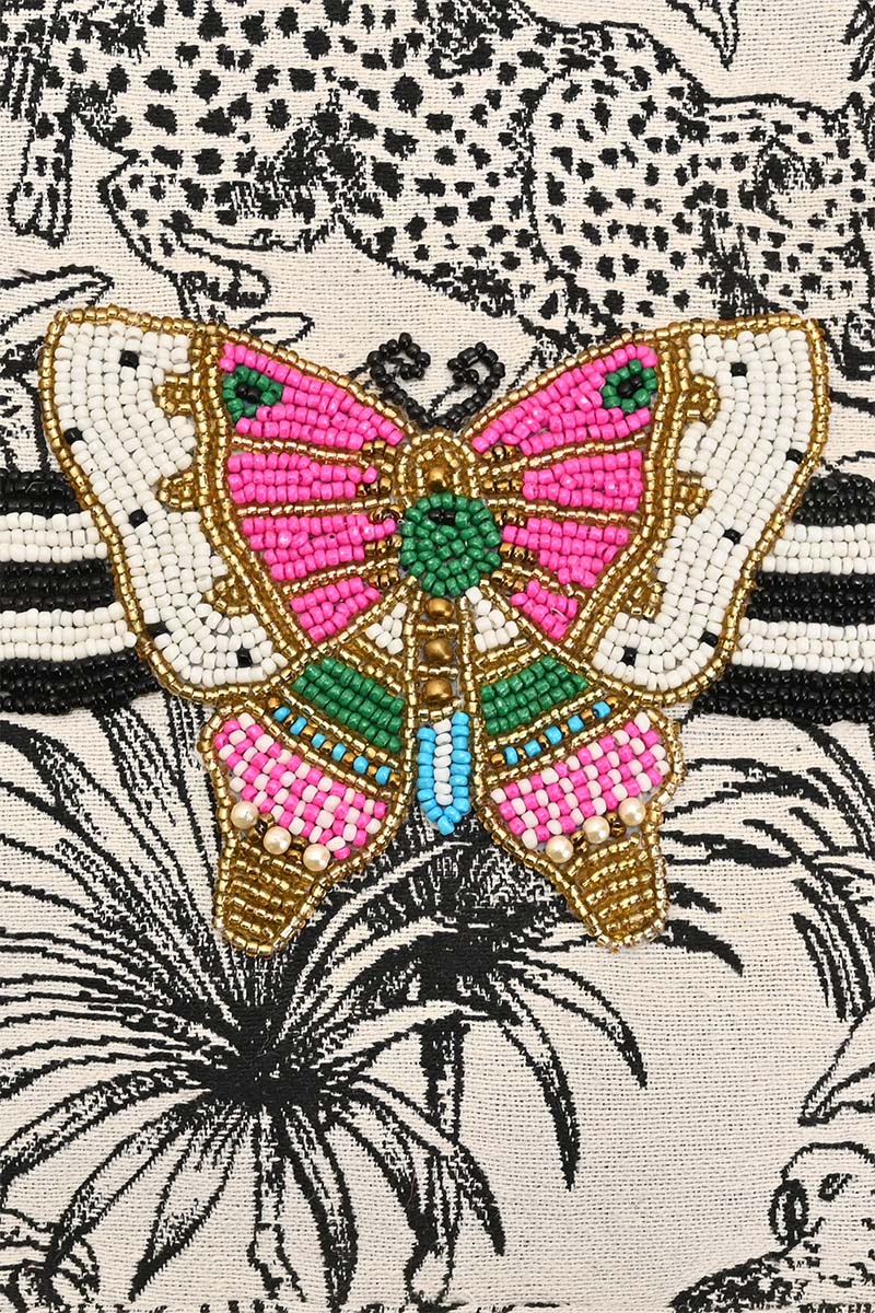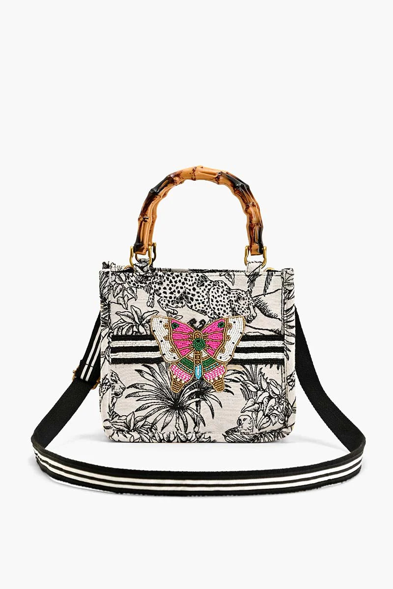 Introducing the Forbidden Handbag, a unique and stylish way to carry all your essentials! This gorgeous bag is handmade with intricate beadwork and a beaded butterfly in the front. The bamboo top handle and adjustable strap make it easy to carry, while the magnetic button closure and hand-woven jacquard fabric keep your belongings secure. The lined interiors feature a zip pocket and a mobile pocket, making this bag the perfect companion for any occasion. With its beautiful design and practical features, this handbag will keep you looking stylish and sorted for every occasion.