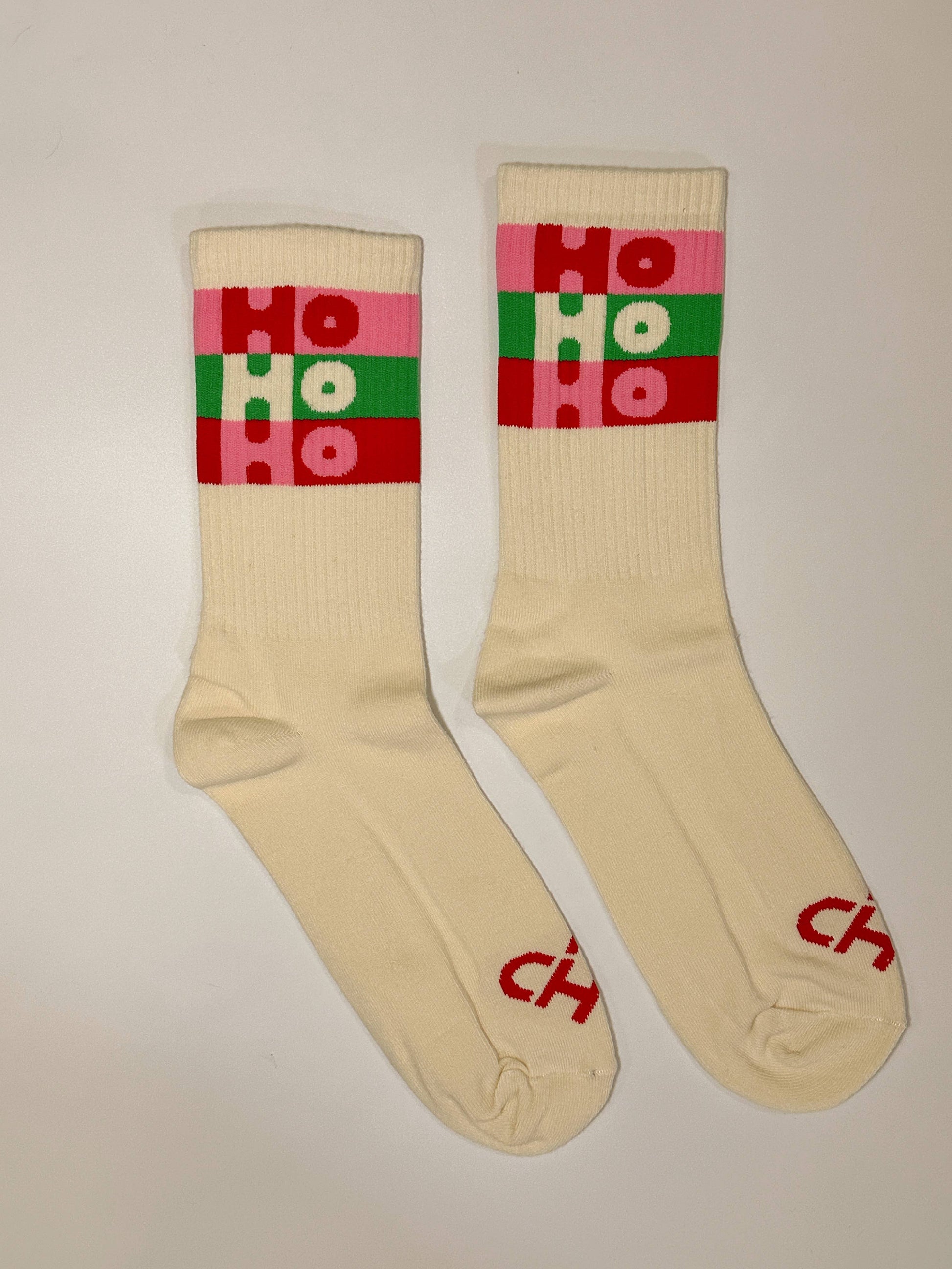 Stay festive and cozy with our new Ho Ho Ho Crew Socks! These soft, comfy socks feature fun, bold lettering that adds a playful holiday vibe to your wardrobe. The cute Ho Ho Ho pattern appears on both sides of the ankle on both feet. Designed with a snug, crew fit, they’re perfect for keeping your feet warm while spreading some cheerful, laid-back style all season long.