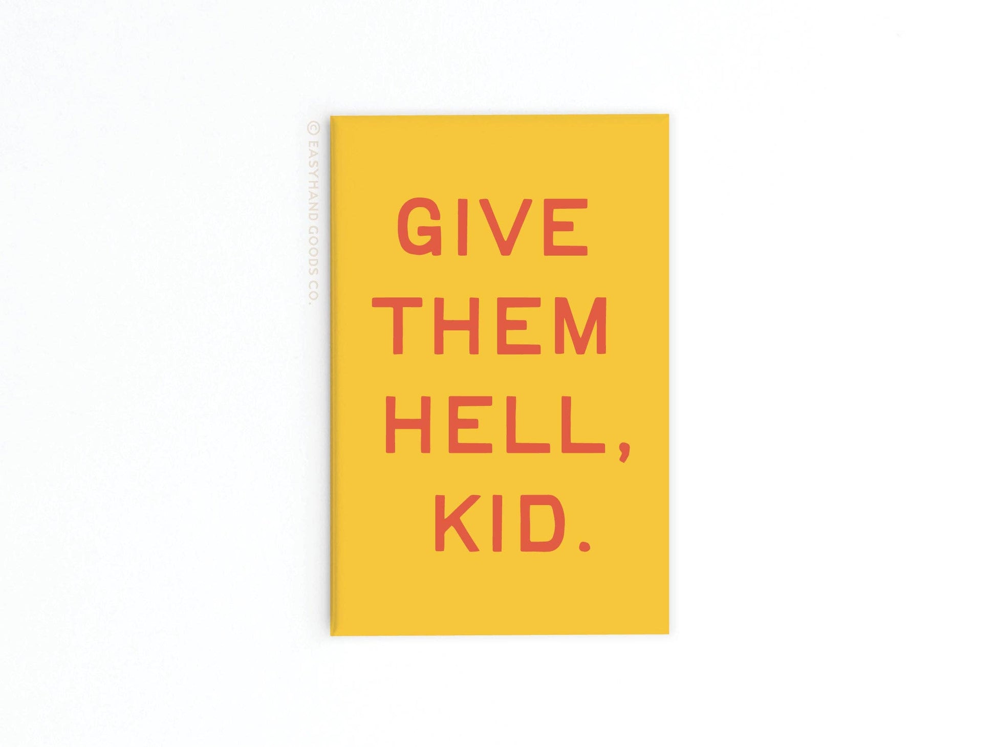 Make a bold statement with the Give Them Hell Kid Refrigerator Magnet. A motivational phrase with a rebellious edge, this magnet is a daily source of empowerment.