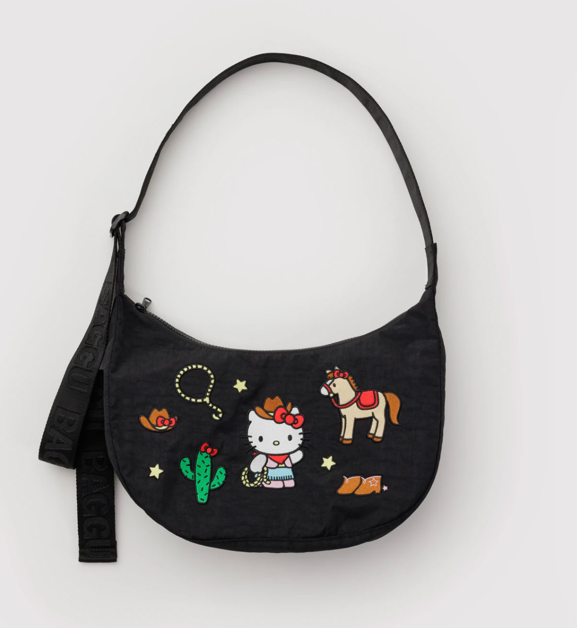 Medium Nylon Crescent Bag - Embroidered Hello Kitty Western
