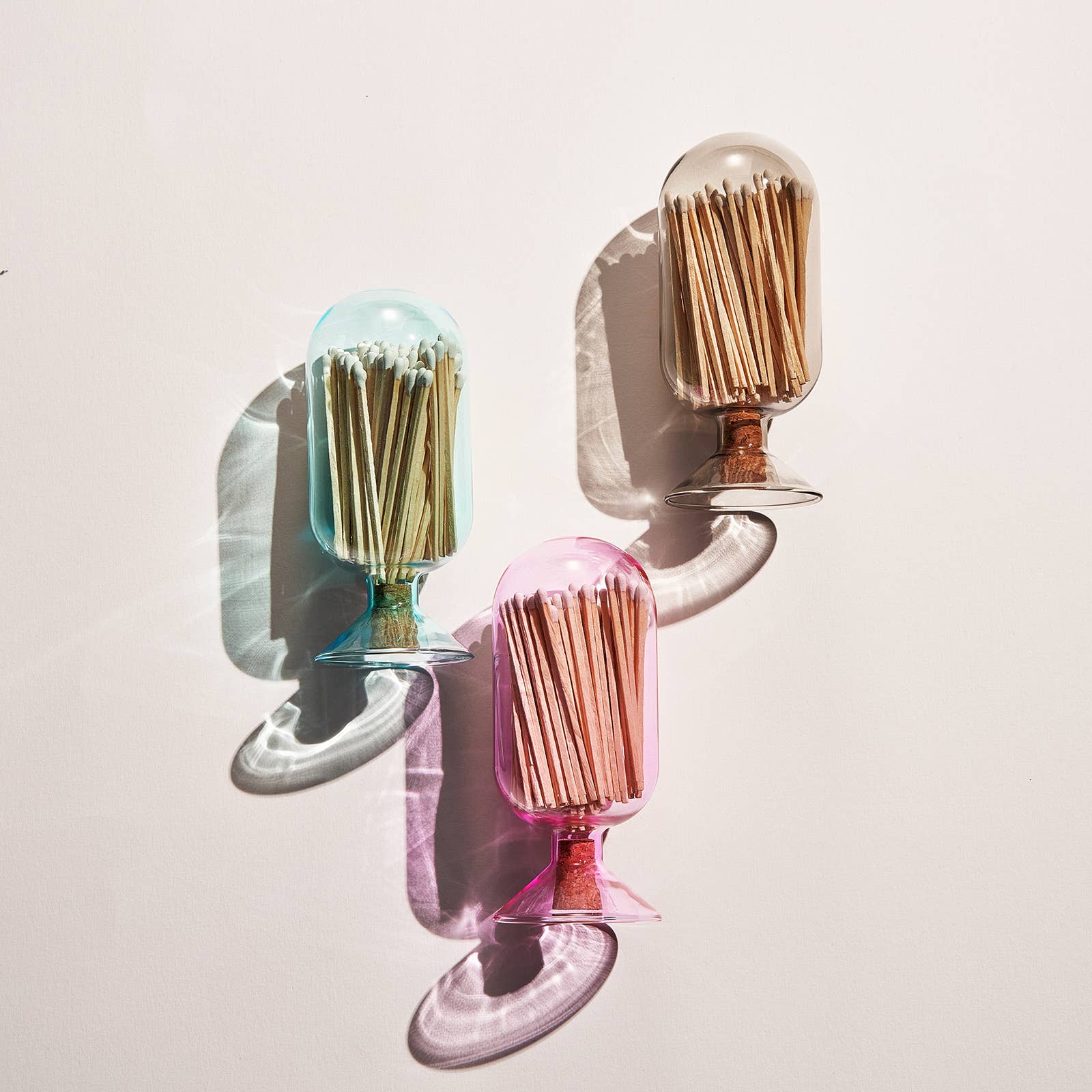 Pink Glass Match Cloche | 100 Match Sticks with Cork Stopper