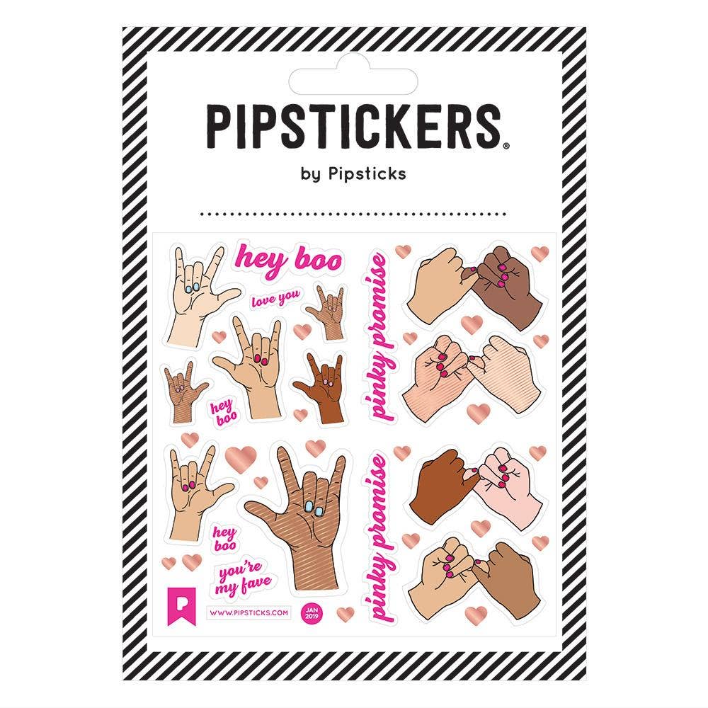PipStickers are the PERFECT gift for the sticker lover in your life - even if its you! These unique PVC designs with rose gold foil accents come on a clear backing and cannot be found anywhere else.Includes one 4 x 4 sheet of Pinky Promise PipStickers and includes the Pipsticks manifesto.