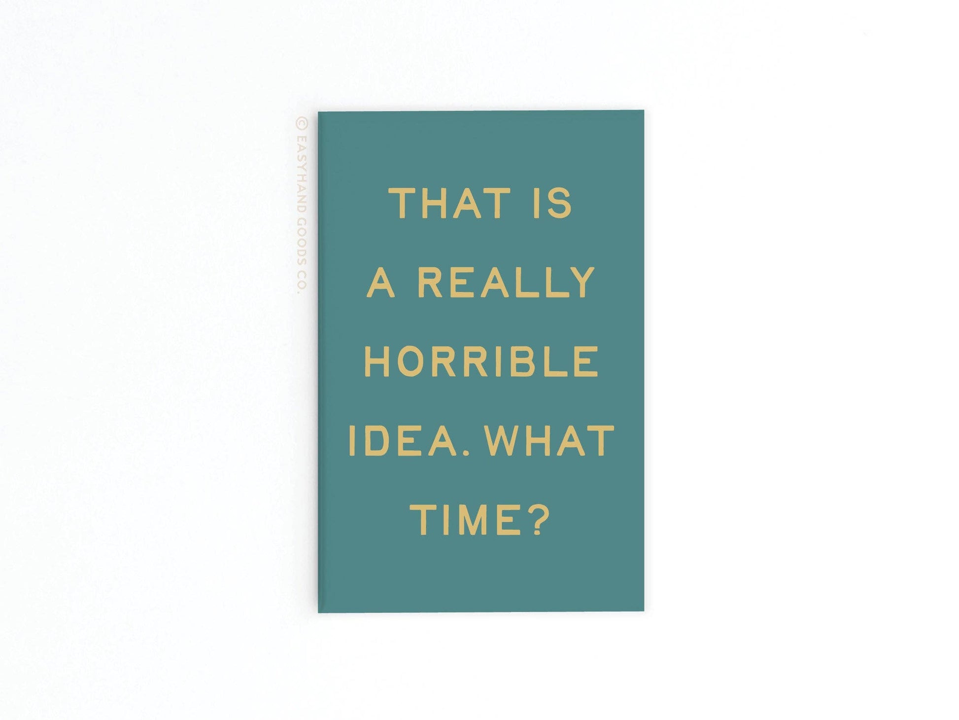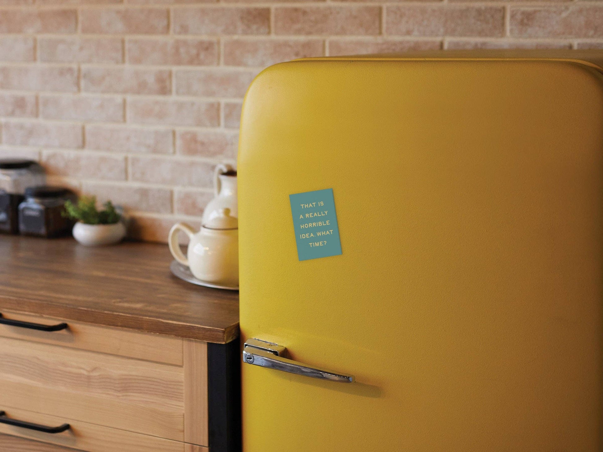Embrace the humor of questionable decisions with our Really Horrible Idea Refrigerator Magnet. This magnet adds a touch of wit and self-awareness to your space, serving as a lighthearted reminder that sometimes the best stories come from the worst ideas.