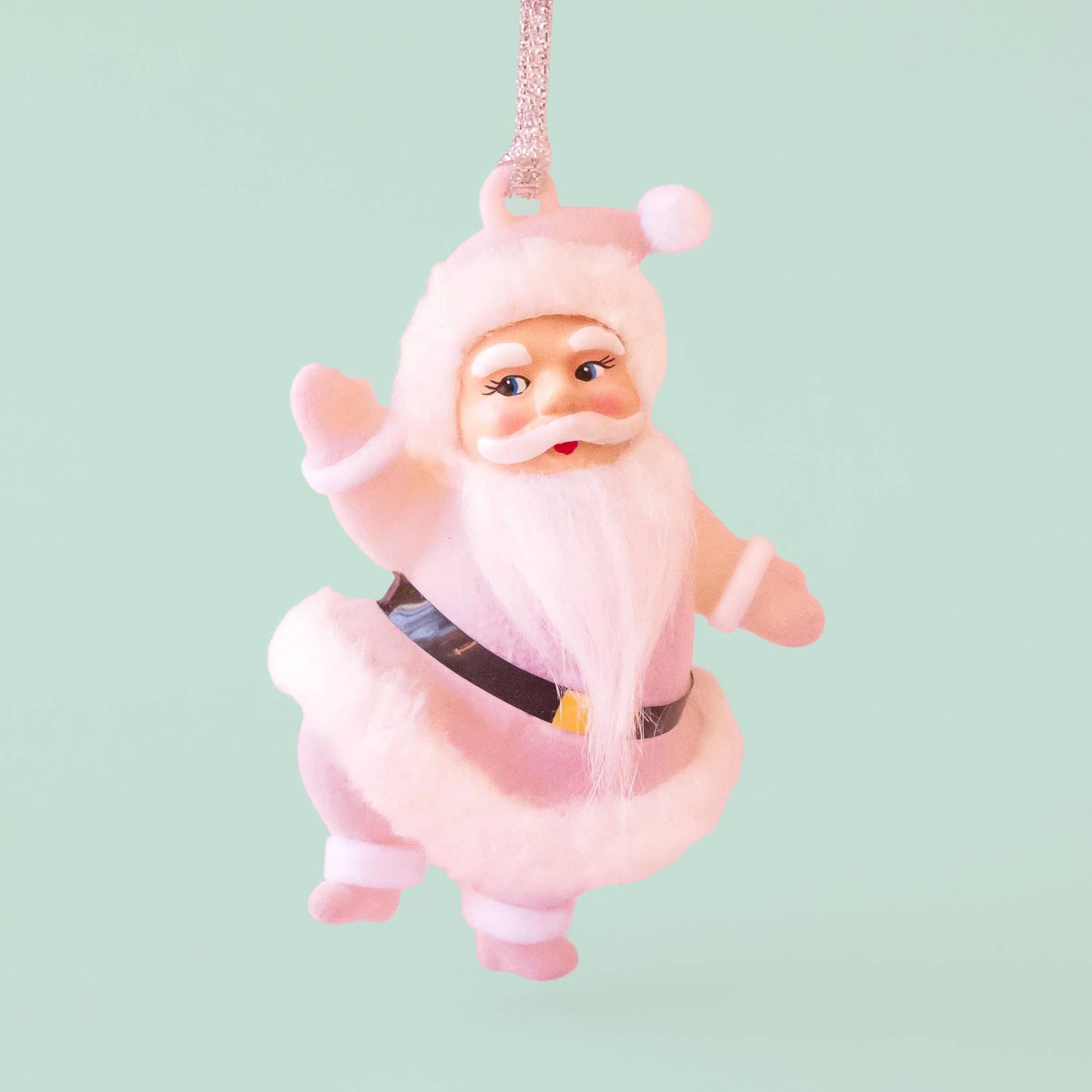 Retro Flocked Dancing Santa Ornament | Light Pink